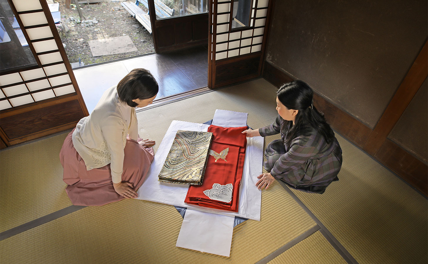 初回のご相談は無料です。ご着用予定の振袖一式をご持参ください。振袖・長襦袢の状態(汚れ・シミ・焼けなど)、ご試着でサイズ直しの可・不可なども含めた確認、ご希望のスタイル内容をヒアリングいたします。